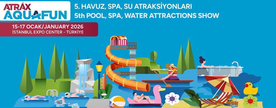 پنجمین نمایشگاه استخر، آبگرم، سلامتی و جاذبه های آب استانبول(AQUAFUN – POOL, SPA, WELLNESS & WATER ATTRACTION EXHIBITION 2026) در روزهای 25 الی 27 دیماه 1404 همزمان با نمایشگاه تجهیزات شهربازی استانبول(ATRAX 2026) در مرکز تجارت جهانی استانبول(Ifm) برگزار می گردد.